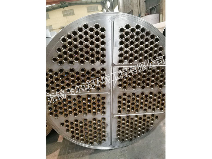 3、碳鋼列管式冷凝器使低層管子處于冷卻水入口處,而使冷凝液積于底層,以便減少冷凝液的溫度。外表冷凝系統(tǒng)中,對冷凝液進一步冷卻重要,如果冷凝系統(tǒng)中的溫度較高,一接觸空氣就會有大量揮發(fā),一般冷凝液的入口溫度要求在60℃。當然也可以增加一個單獨的冷卻器,不過這樣要增加費用。